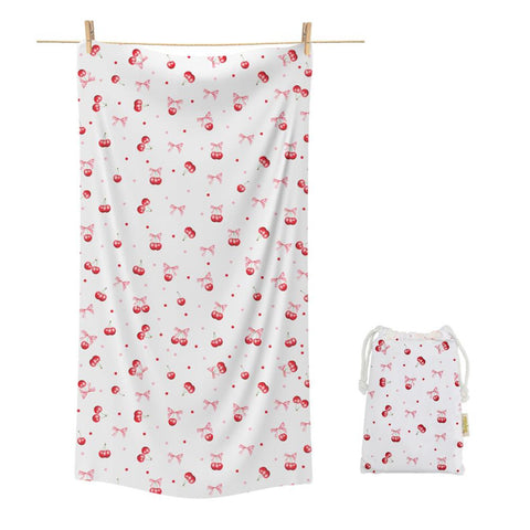 Υπέροχη πετσέτα θαλάσσης με σχέδιο κεράσια, περιλαμβάνει πουγκάκι αποθήκευσης.